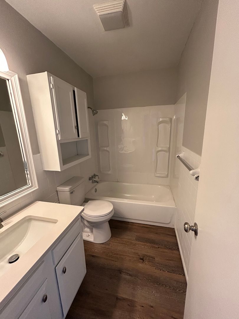 Updated Bathroom: The modern bathroom is designed for convenience and style, featuring updated fixtures.